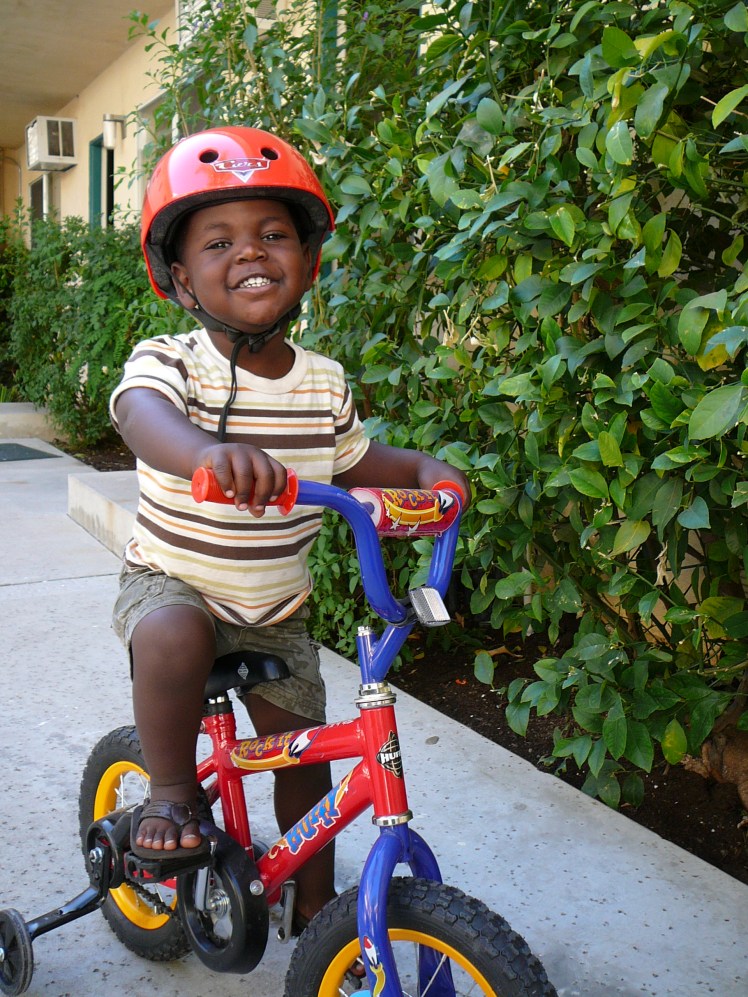 2. If kids in Uganda are the same ways as kids in Ecuador.. or Oklahoma… What is he doing with a helmet bro?