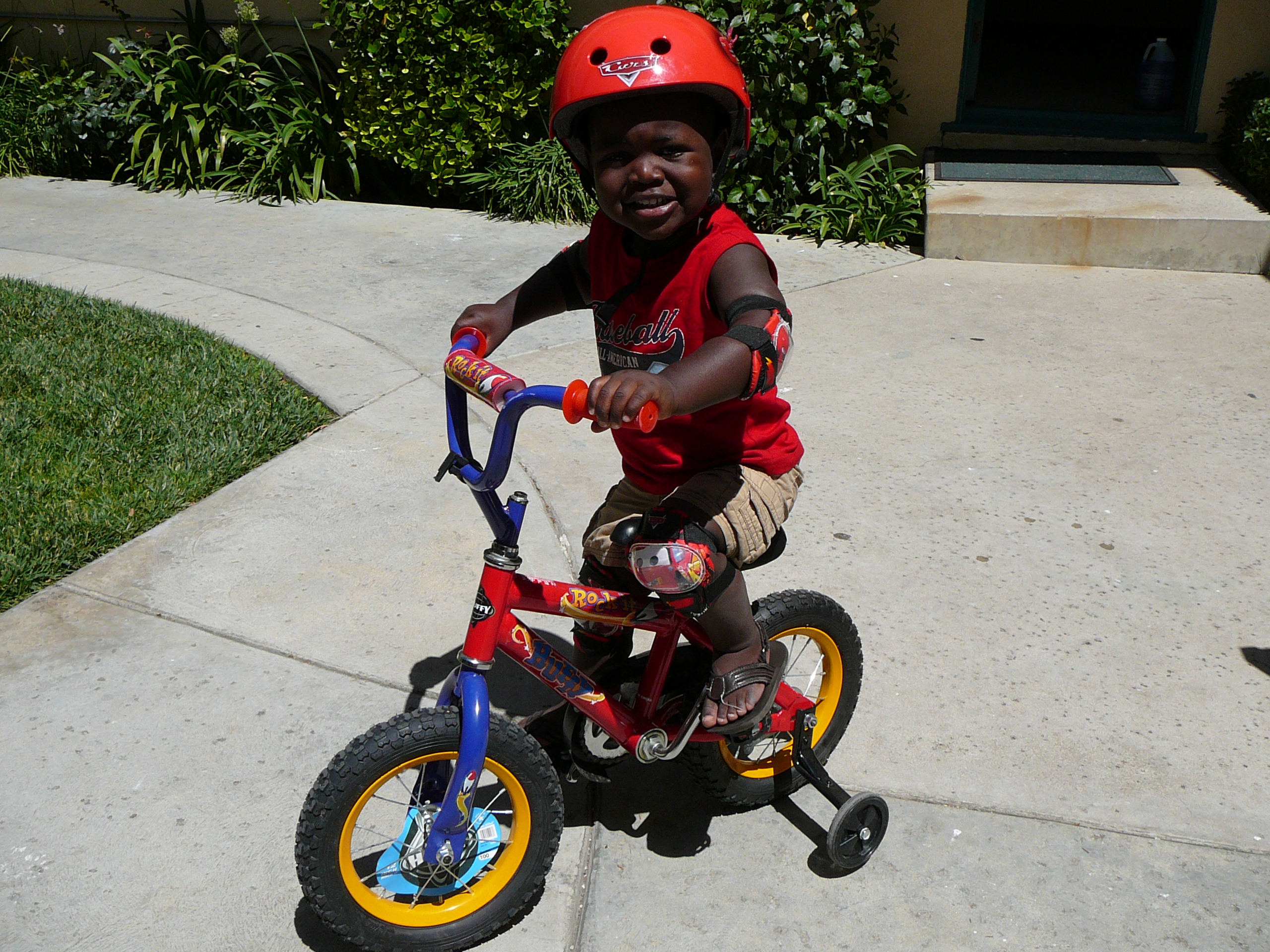 We bought Judah his first bike several weeks ago.  For the first week or two he tried and tried but couldn’t quite get the hang of the pedal cycle.  He knew to push one pedal forward and down, but once he pushed it all the way to the bottom, he didn’t know how to turn the other pedal over the top and keep the cycle going.  Now, two weeks later, he’s riding around the courtyard like a pro.